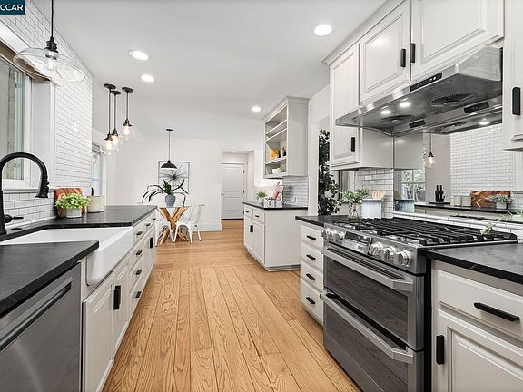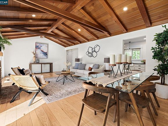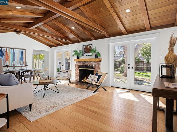 Custom single-story 4 bedroom, 3 bath home on a sprawling .43-acre lot, thoughtfully designed for seamless indoor-outdoor living. Dedicated foyer welcomes you into a beautifully curated interior, where hardwood flooring & exposed-beam ceilings set the tone for timeless elegance. Spacious living room with fireplace & dual French doors open to the backyard, blending indoor & outdoor spaces. Adjacent family room offers another inviting retreat with outdoor access. Chef’s kitchen features soapstone counters, high-end stainless steel appliances, a 5-burner gas range, and 4 ovens (including three half-sized), plus custom cabinetry extending into the dining area for function & style. Expanded primary suite boasts vaulted ceilings, window seat, backyard access, walk-in closet & spa-inspired ensuite with heated floors & modern finishes. Three additional spacious bedrooms share an updated hall bath with dual sinks & a 7’ tub. Renovated laundry room & 3rd bath add convenience. Serene backyard features a flagstone patio, mature trees & play structure, while two Tuff Sheds offer flexible space for an office, hobbies, or extra storage. Beautifully landscaped front yard with vibrant blooms, trees & a sports court. Minutes from parks, trails, downtown Walnut Creek, BART & freeway access.