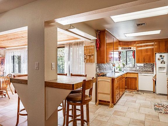 Set back from the road, this home offers privacy like living in the forest and there is plenty of parking for RV, boats, and toys. The home has a separate living and family room as well as additional square footage and a full bath down stairs in the walk out basement. Featuring a covered front porch, wood flooring, custom knotty pine ceiling, and updated tile and back splash in the kitchen with plenty of cabinets. Enjoy entertaining on the rear patio and inground pool.