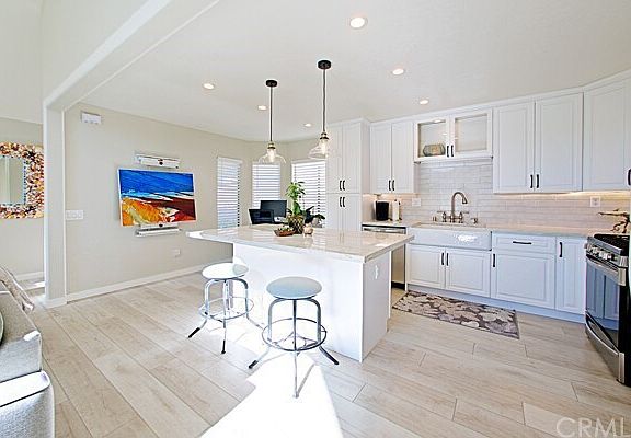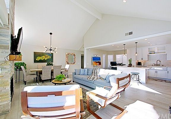 Totally remodeled home in the prestigious Eastbrook community in Mission Viejo Ca. This home is beautifully presented with two master bedrooms and two bathrooms. The vaulted ceilings and dramatic windows make this home light and bright allowing an abundance of natural light. The chef's kitchen is beautifully appointed with Quartzite countertops, white shaker (styled) cabinetry, a farmhouse sink and stainless steel appliances. The living room is spacious and the fireplace is presented with stacked stone and a distressed appearance wood. The flooring throughout is a grey toned laminate, perfect for various color themes. The backyard is oversized and offers a flagstone finish. This home is centrally located to shops, restaurants, schools, parks and transportation options. The beautiful, Mission Viejo community features an abundance of parks, and a large that has plenty of fun events throughout the year.