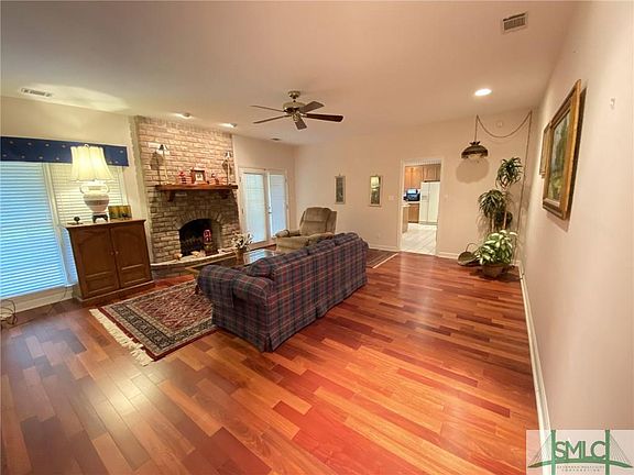 All brick one-owner custom home on 7.7 acres was custom-built (by Meguiar Construction) for the owner. Wood floors throughout living areas. Foyer with adjacent study leads to large Great Room with wood burning fireplace. Custom Sunroom has windows all around and overlooks peaceful backyard and wooded acreage. Kitchen has big eat in area, built in desk and shelving, many wood cabinets and pantry. All appliances stay including washer and dryer. Formal dining room is large. Master bedroom is huge as is master bath which has double sinks and solid surface counters and linen closet. Enormous Master Bath has large soaker tub and separate the glass shower. There's an additional linen closet in the hall bath. The 2 guest bedrooms are ample size with double closets. Pump house in back protects the well. House is set back with asphalt driveway to double garage and expanded parking pad. If you are looking for privacy--this is it!