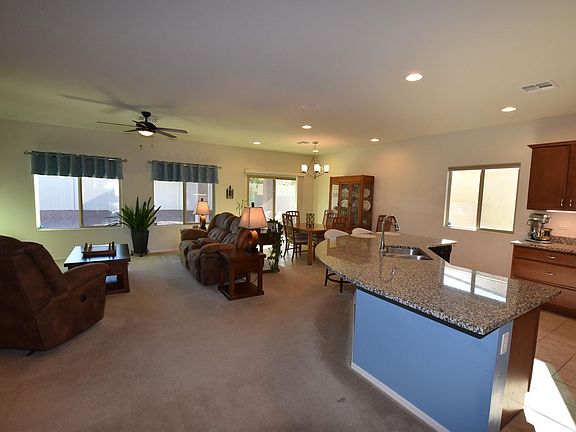 Beautiful 3 bedroom/2 bath home in Red Rock Village! Spacious open floor plan with lots of natural light. Great room with one living & dining area. Kitchen has granite,upgraded cabinets, black appliances & large island with seating All appliances stay including washer/dryer in laundry rm. Split bedroom plan. Spacious master suite with dual sinks & large walk-in closet. Spacious backyard with covered patio. Work bench in garage. New water filtration system stays. Community has multiple community amenities such as a skate park, sports fields, poolarea and more. This is a must see home in this ever growing Pulte built community. Leased solar system provides very low utility cost in this all electric home. Eligible for USDA 100% financing when buyer qualifies. Call for more details.