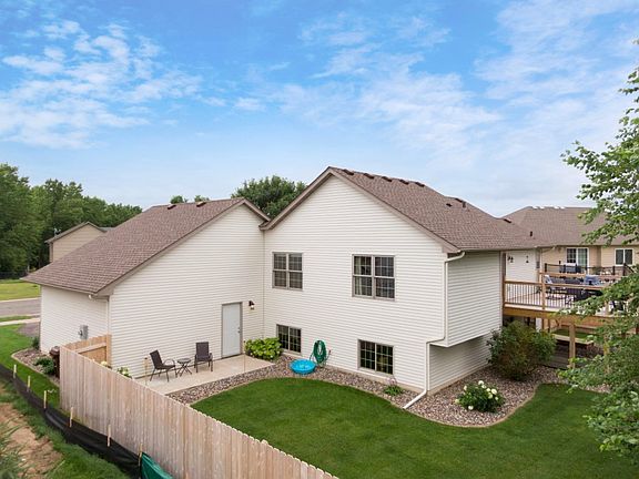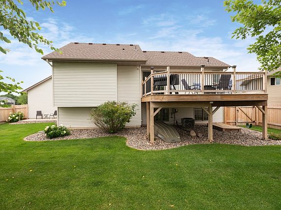 Extraordinary former model home with high quality materials and an unbelievable backyard! Open concept floor plan with vaulted ceilings, and large entry with ceramic tile and side stairs. Marvin windows, custom tiled lower level bathroom, stainless steel appliances, gas range, tile kitchen backsplash, gas fireplace, solid wood doors, tons of storage, walk-through full bathroom, maintenance-free siding, in-ground sprinkler system, and more! New carpet, paint, washer and dryer, and light fixtures. The yard is amazing â fully fenced with privacy fence, mature trees, spectacular landscaping, stone edging, concrete patio, deck, and all on a quiet street! Pride of ownership shines throughout this meticulously maintained home. Schedule your tour today, you will be impressed!