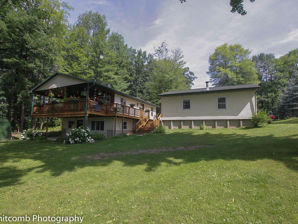 Excellent opportunity here for a year-round residence on private all-sports Brady lake. This quality, custom-built home/cottage is 14 years new and has all the modern luxuries. The 2+ stall garage has lots of storage, gas heater, range, fridge and bar--it's setup for the ultimate party barn! There is spacious parking and an expansive grassy yard. The main floor layout flows well and includes oversized sliders to an amazing covered deck, which overlooks the lake and nicely landscaped yard. The fi nished walkout basement will be perfect for your overnight guests. 2 bedrooms up and 1 down. Call today!