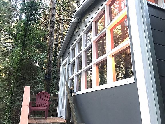 Charming Tiny House! If you are looking for a unique weekend retreat or studio, look no further. This charming creekside bungalow sits high above the street nestled in the redwoods. Always cool during the summer and magic in the winter. The owner has cared for the cottage with love. Upgrades include a concrete perimeter foundation and a steel roof with seamless gutters. New on-demand propane water heater. All new appliances.