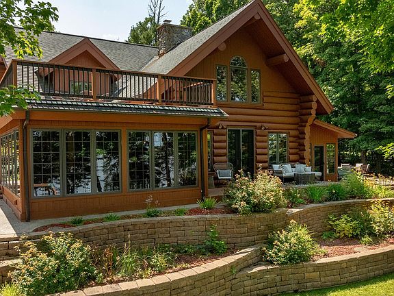 Experience the perfect combination of rustic elegance and modern luxury in this exquisite log home on Boy Lake. Nestled on 5.2 acres of peaceful seclusion with 302 feet of pristine, hard-bottom shoreline, this expansive 5-bedroom, 4-bath retreat offers the ultimate lakeside lifestyle. Inside, you'll find a spacious layout featuring a real wood-burning stone fireplace, ideal for cozy evenings. The home office boasts stunning lake views, while the year-round sun porch invites relaxation in any season. Above the detached garage, a comfortable guest suite provides additional space for family or friends. For entertainment, the lower-level home theater room is perfect for rainy days. The insulated pole barn offers generous storage or workshop potential. Boy Lake is renowned for excellent fishing and boating, with easy access to Swift Lake and the Boy River, making this property a haven for outdoor enthusiasts. Whether seeking a peaceful getaway or a place to entertain, this property truly has it all. Don't miss your chance to own this lakeside paradise!