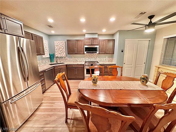 How do you find the perfect home, fully remodeled and fully furnished with a decorator's eye? How do you get all the work, all of the furniture and fantastic design ready for you to take over in today's supply issues? The answer sits at the entry of this beautiful home in the gated Spinnaker Bay community. The upscale granite, custom backsplash, new flooring and stainless appliances accentuate the very best dual primary bedroom plan Laughlin presently offers. Interior design consistent throughout; home presents as a model. custom renovations open up the floor plan, new contemporary cabinets and extras in every space. Three sided fireplace divides oversized formal dining and great room. Adding utility is a much needed 1 car garage and 1 car attached carport. Upstairs laundry, new lighting and a convenient patio for cooler evenings. Home offers spectacular unobstructed mountains and city lights. As turn key as they come, think how easy it is to step into your dream home.