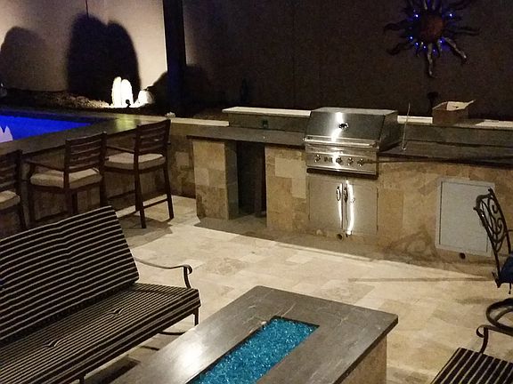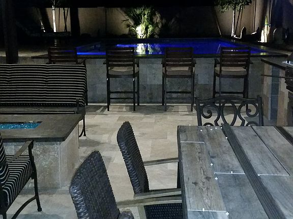 Stunning 3602 sq ft single story home boasting 4 bdrm, 3.5 bath w/flex room & oversized 3 car gar. NO HOA Highly upgraded custom entertainers dream home features new resort style pool w/ swim up bar & large grotto w built in grill, fire pit, TV & shade awning. Large Master Suite w/ walk in closet, jetted tub & access to back yard living space. Gourmet kitchen w/ granite counter tops, island, stainless steel appliances, double ovens, gas stove with hood, walk in pantry, breakfast area, & formal dining area. Polished travertine floors w/ inlays & new plank tile floors throughout. Faux painting, stone accents, plantation shutters, & laundry room with sink, built ins & counters. Additional features: shaded R.V. parking up to aprox 42 feet w/ 50 AMP hook up & artificial turf.
