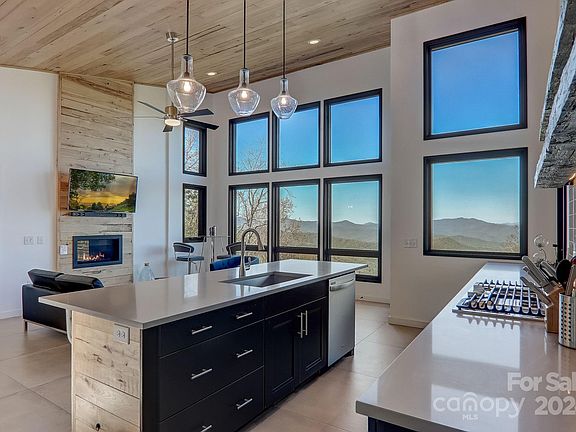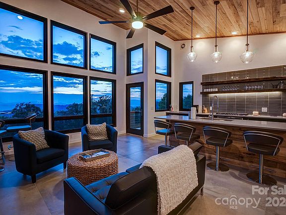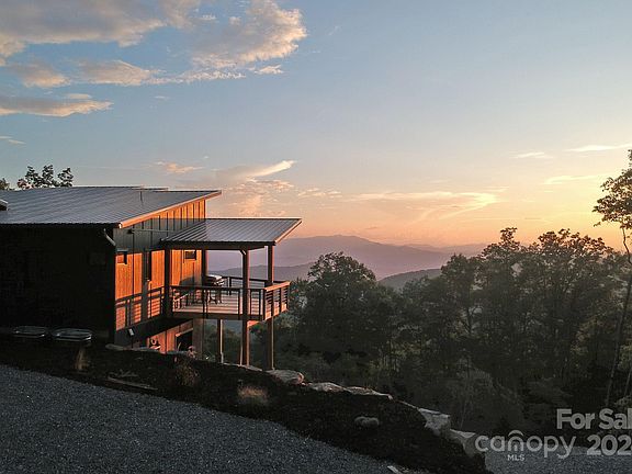 You’re on Top of the World in Sunset Falls at 3,400 ft in The Falls. This private home is one of the best sunset views in Swain County seen through floor to ceiling windows from the living area & every room in the house! With excellent cell service & high speed, unltd internet, you many never leave. Paved with 2 waterfalls to wow you on the way up, this neighborhood is close to the hwy & Bryson City. It’s the perfect combination of contemporary design & rustic finishes with concrete floors, an open concept, central living area with modern gas logs & kitchen with quartz counters, gas stove, open shelving & tiled dog wash. There are 2 private BR's on the main floor with 2 baths & doors to the deck from both. The main BR has 2 walk-in closets, soaking tub & tiled shower in the ensuite bath. Downstairs you’ll find another BR, bath & a spacious media room that walks out to the firepit area with a hidden office & utility room on this floor. Call today on this rare Smoky Mountain Modern home!