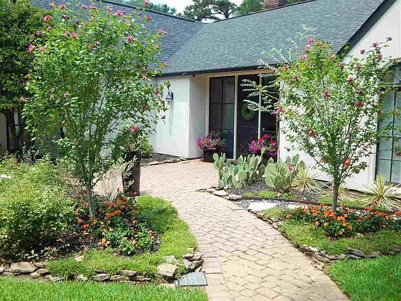 This home has been totally redone from top to bottom and is so so gorgeous; inside and out! It has incredibly unique features, tons of living room, beautiful marble counters in kitchen, with stainless GE Cafe' appliances including 60 5 eye gas cooktop range, beverage cooler, 2 brass & glass Sputnik light fixtures, 14' ceilings with a painted brick fireplace w/stone mantle, Domed ceiling w/LED lighting over foyer w/brick pavers, herringbone wood plank floors, several floor-to-ceiling bay windows, an extra-large formal dining room, a large Loggia, professional landscaping with courtyards, beautiful planters, stone trimmed beds, a Gazebo, and stone walking paths, including rock speakers from the interior and exterior sound system. There is approximately 3,569 sq feet, 4 bedrooms, 3 full baths and 1 half bath. This home's design is unique with a non-traditional 4th bedroom that can be office, a nursery, and combined for another master suite. This corner lot has a circular drive and sits in a private gated area with only one access, so very quiet plus close to everything!