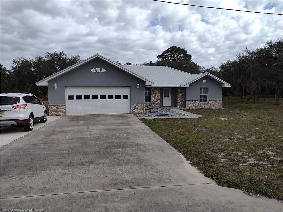 Avon Park Lakes Estates! NOT in an HOA! A Move-in Condition Home and a Metal Roof Tops it All Off! Marvelously Designed 3 bedroom, 2 bath, With A Large 2 car garage and Double Drive way, on Large 100x120 Lot on Paved Road. This Concrete Block and Stucco Home Features the Best Use of Space in the Well Designed 1675 Living Sq Ft with Vaulted Ceilings Making this home feel even Larger! Large Living Room with Separate Dining Room and Eat up Bar in Kitchen. Master Bedroom features an En-Suite with Walk-in Shower & Separate Garden Tub, Walk-in Closet. There is a Split Guest Bedroom Plan, Guest Bath has Tub & Large Linen Closet. Lots of Storage Space in this home and even the Garage has an Air Conditioned Storage Space! Indoor Utility Room has Pantry, Cabinetry and Laundry Sink. Private Back Screened in Porch and an open Patio to Enjoy neighboring vacant treed lots! Well Pump runs home. Room for your RV on the Right Side of Home or Left! Graveled Flower Beds.... Oh so Country!