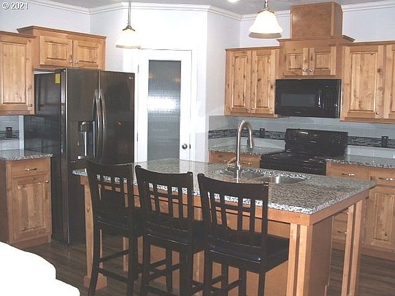 Beautiful MF home in Crestwood. 2X6 construction! 2 bedroom, 2 bath with den that could be 3rd bedroom if doors were added. Kitchen has granite counter tops with island & seating, wood cabinets, large pantry, laminate floors and includes newer refrigerator with ice maker. Cove ceiling in front room, high end fixtures, washer and dryer included! Tuff shed in bk yard. Close to Old town, restaurants and river. Easy commute to Portland.
