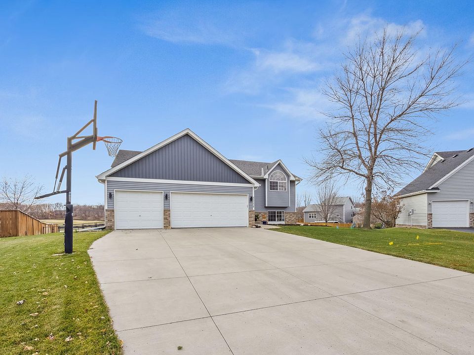 You found it! This turn key home is ready for you to move in and enjoy. Greet your guest into your spacious entry leading to your open floorplan home. The vaulted ceilings create a spacious and airy atmosphere in the kitchen, living and dining room that walk out to your mntnc free deck. Three BRs are located on the main lvl including a spacious primary BR w/walk-in closet & private BA. The lower level offers a perfect set up for relaxation and entertainment, with 2 BRs, a large family room w/gas frplc, full BA & walk out to your patio & huge back yard, giving easy access to outdoor activities. The nearly ½ acre yard is complete with lots of room to play, an outdoor fireplace off the patio, irrigation system and fenced yard. New roof 2022, new siding, Trane furnace w/humidifier and A/C in 2023. Located in a high demand neighborhood, close to multiple parks, schools, medical, shopping and easy highway access. Schedule your private showing today!