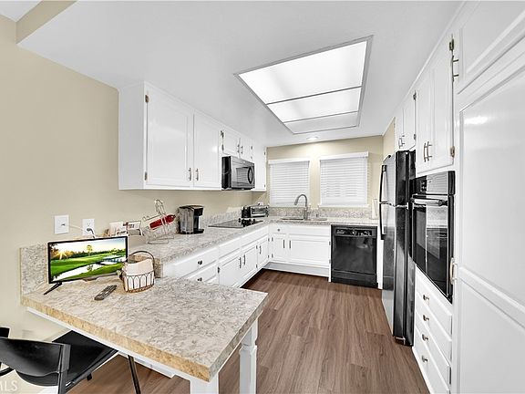 Don’t miss out on this Upper Level Casa Linda End Unit. Conveniently Located Between Gates 5 and 6. The home features newer paint and flooring plus smooth ceilings throughout. The spacious living room has newer windows and a sliding glass door that lets in lots of natural light, the balcony is perfect for the morning sunrise plus a HVAC heat pump. Guest bedroom has a sliding glass door to an enclosed sunroom with easy access to the balcony and ceiling fan. Kitchen features include a skylight for added light, raised counters which are quartz, newer paint and all appliances are included. Primary bedroom features carpet in the bedroom, a dressing area with vinyl floors, 3 closets, ceiling fan, newer HVAC heat pump, washer and dryer which are included! Both bathrooms have a newer vanity and fixtures. Level access to the unit (no stairs on one side). The unit also has level access carport with double storage and Lots of Guest Parking Makes it Convenient for Visitors. The Community of Laguna Woods Village features: 2 golf courses, 10 tennis courts, 5 pools, 3 fitness centers, Bridge Card Room, 7 club houses, Equestrian Center, 3 Computer Labs, Performing Arts Center, 250 clubs, community bus service & much, much more. Laguna Woods Village is close to Shopping, Dining, Medical Facilities, Freeways, Beach & More! The Unit includes: water, trash, basic cable, landscaping, and exterior building maintenance plus access to all Laguna Woods Village Facilities. Enjoy the "Gold-Standard" in Senior Living.