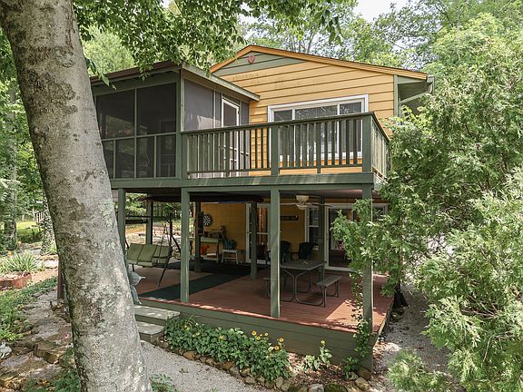 Welcome to lake life on the quiet and peaceful Woodland Lake in Brown County! This property features a nearly level lot with a private beach and dock. The living room has a stone fireplace with a wood burning insert. The kitchen has custom cabinets, stainless steel appliances, new flooring and a dining area with lake views. The master bedroom also overlooks the lake and has a freshly screened porch and private deck. A second full bath was added on the main level, as well as an updated laundry room. The 24x24 garage is a year old and has a half bath, cabinets and workbench area. The landscaping features beautiful stone terraces and perennial planting beds. New windows and storm doors throughout! A complete list of improvements is available.