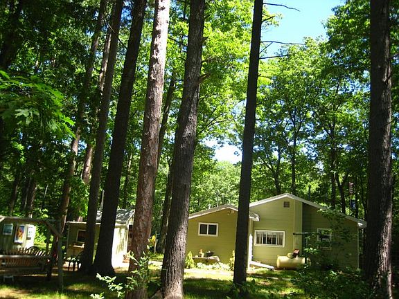 Cute as a bug! This, one bedroom, one bath home is perfect for a summer retreat, winter living or a cute rental property. Set back in the woods on a double lot across the road from lake Huron and close to National Forest