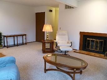 Enjoy lakefront living with views of the water from most rooms of this end-unit 2 bedroom, first floor condo on Lake Devonshire. Wood burning fireplace in the nicely sized living room. Unique bathroom plan allows access to the full bath from the hallway, or via the master bedroom through the half bath. All kitchen appliances. Freshly painted. Built-in shelves in attached one-car garage for excellent storage. Covered patio. Central Champaign location. Condo fee covers lawn care, snow removal, trash, and exterior maintenance.