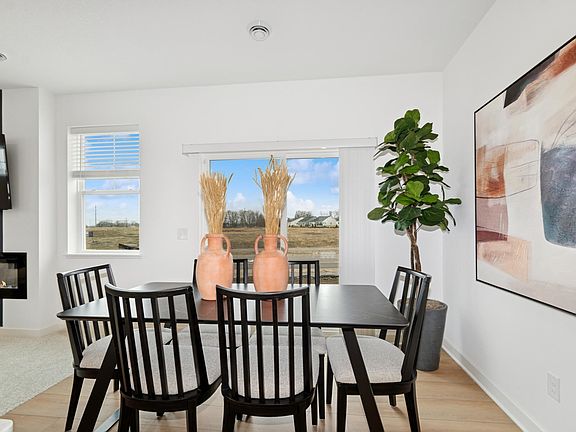 This home is available for an August closing date! Step into the end-unit Raleigh, where modern design and functionality come together seamlessly. The open-concept main level boasts 9-foot ceilings and a flowing layout that effortlessly connects the kitchen, family room, and dining area—perfect for gatherings. The kitchen is a showstopper, featuring sleek white cabinetry, quartz countertops, stainless steel appliances, a gas range, a spacious center island, and a chic tile backsplash. For added ease, blinds are already installed. Upstairs, you’ll find 3 bedrooms, 2 baths, and a convenient laundry room. The primary suite serves as a relaxing retreat, complete with a private bath and an expansive walk-in closet. Additional features include a two-car garage and a charming patio. Situated near walking paths and trails, with quick access to shopping, dining, and Highway 169, Summerland Place offers the lifestyle you’ve been looking for!