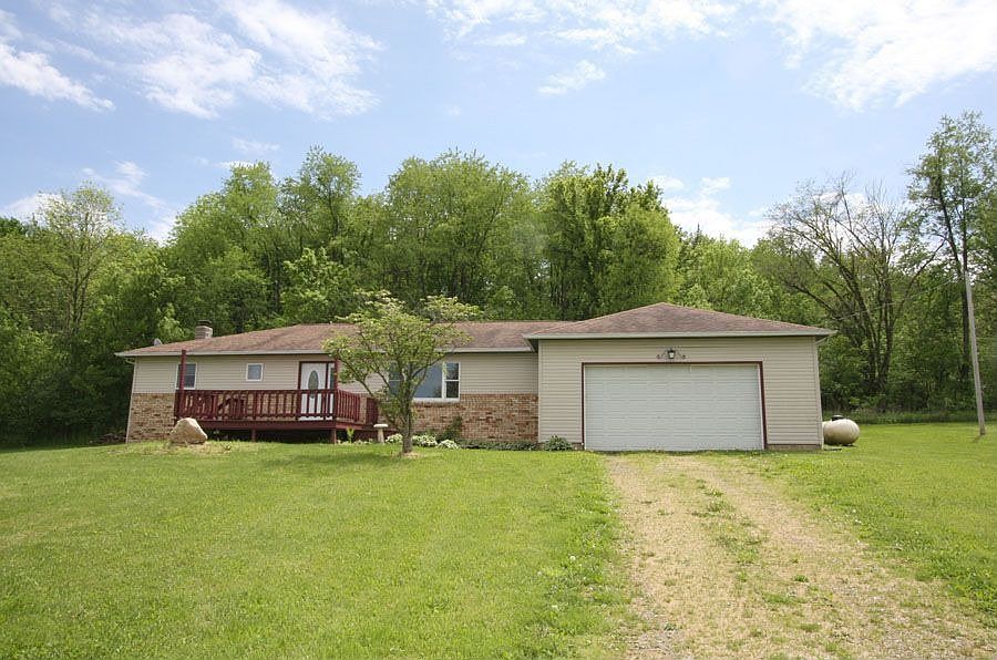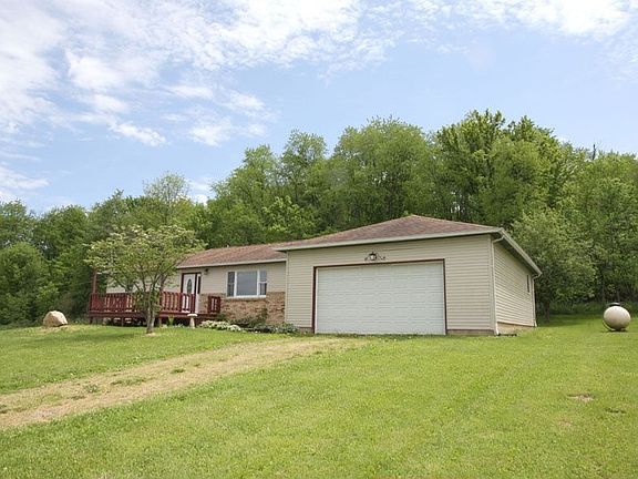 Wonderful country ranch situated on nearly an acre of land, this home is much larger than it looks and features 4 bedrooms and 1.5 baths, an extra large living room with picture window, enormous kitchen and dining room combination that features a breakfast bar and glass sliders that lead to the rear deck and back yard, convenient first floor laundry room, big master bedroom suite with half bath, walkout lower level with wood burning stove, 2 car garage with power opener, large relaxing front deck, vinyl sided exterior, quick possession available, won't last long at $120,000. VIRTUAL TOUR
