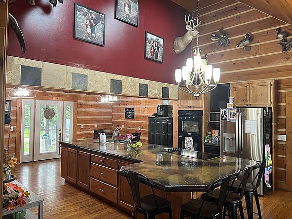 No rent to own! Built in 1994, the 3,400 sq ft log cabin (wrapped in siding), 6 bed/4 bath home with an attached 2 car garage, sits on 10 acres North of Brookfield, MO. The home comes with a 4,000 sq ft she’d & solar panels that produce 12-13 kilowatts per day.
