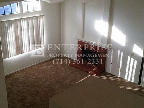 REDUCED RENT and DEPOSIT Offering a Spacious 4 bedroom 3 bath home in the Sterling Heights Neighborhood. One bedroom and bath located on the first floor. Home comes with stainless steel appliances including Refrigerator, all new. 2 car attached garage, with washer/dryer hookups. Cozy Fireplace, Family room, Wet bar. Master bedroom is very spacious with attached bathroom, double sinks. Walk in closet in master, other closets are good size. New Paint, Carpet and vinyl wood grain flooring. Tenant pays all utilities, Owner pays Gardening service. Pets welcome (limit 2 with ADDITIONAL DEPOSIT). Tenant must get Renter Insurance $300,000 coverage.This property is professionally managed by Enterprise Property Management in Santa Ana California.