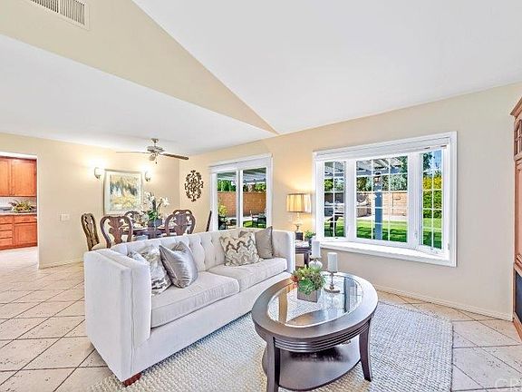 Great single family home with loads and loads of upgrades. Lovely double door entry. 4 br/3 baths. One bedroom and full bath down. Living room with built ins and fireplace. Adjacent formal dining area.Gourmet kitchen with commercial grade Viking range, warming shelf and vent. Granite counter tops and movable island storage with granite top.Tons of storage. A real Cooks dream. Stainless steel appliances. Refrigerator included without warranty. Spacious master bedroom with bay window and inset lighting. En-suite master bath with granite counter top, dual sinks, remodeled walk in shower and walk in closet. Good size secondary bedrooms, one with custom wardrobe and both with ceiling fans. Direct access 2 car garage plus driveway. NEW vinyl windows and doors throughout. .Fantastic grounds. 6875 sq. ft. lot (per assessor). Rear yard has it all. Private Spa, covered patio, large expanse of lush lawn, fruit bearing trees (Avocado) and even a vegetable garden! NO HOA!! No Mello Roos!! Lovely established neighborhood with nearby walking/biking trails. Easy access to shopping and great schools. A must see home that must be seen to be fully appreciated.