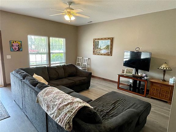 Amazing Ranch duplex with one level living in Peculiar! This home offers fresh paint throughout, new LVP, newer water heater, and roof approx. 2-3 years old. When you walk in you will be surprised by the size of the HUGE living room with tall ceilings! The eat in kitchen offers a ton of cabinet space and all the appliances including refrigerator. The laundry room is off the kitchen and leads to the garage. Off the end of the dining room you will find 2 generous sized rooms and 1.5 bathrooms. The primary bedroom even has a walk in closet. Don't miss the large patio and massive yard with privacy fence! The exterior has been painted with in the last few years as well! Be sure to take a look! Owner/Agents