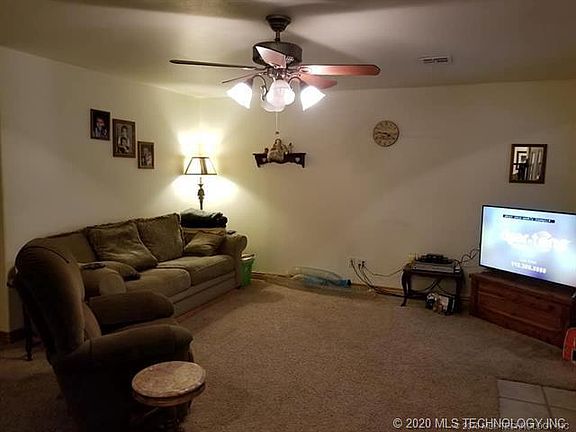 WOW! 5 Large bedrooms, master bedroom with en suite. Custom built home located on 5 acres in the Sequoyah School District of Claremore. Wood burning fireplace sits in a comfortably large living room next to the kitchen. Lots of counterspace & cabinets, eat-in bar and dining room surrounded by windows. All of the windows are tilt-in access for easy cleaning. Media room is soundproof. Large Saferoom. There are 2 creeks on the property, one wet-weather & one dry-weather. Tons of trees! All at a great price!