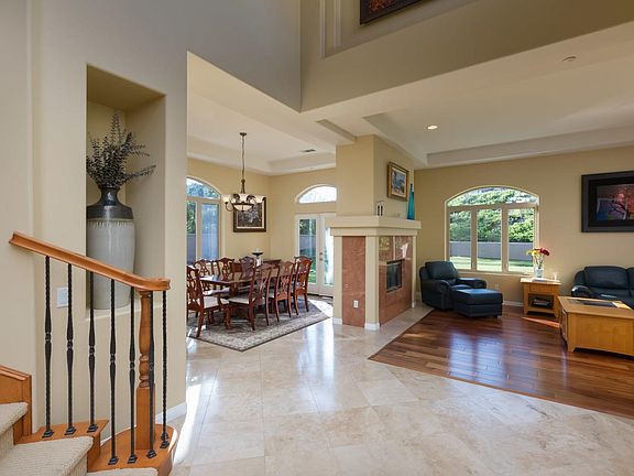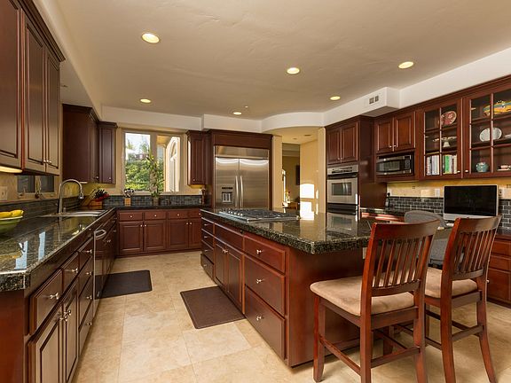 Custom built home on 1/2 Acre close to all 3 schools, including the award winning Olivenhain Pioneer Elementary and Diegueno Middle. Large granite kitchen with nook, master suite with retreat, office or 5th BR down, travertine and wood flooring throughout, dramatic entry with circular staircase... Great family floorplan with one BR down, large master suite w/retreat and marble/travertine bath..(continued)separate formal LR and DR with 2-sided fireplace, granite kitchen w/maple cabinets, stainless appliances, large island, doubleovens, walk-in pantry and lots of storage. Other ammenities include: Brazilian Koa wood flooring in LR, office/5th BR, and second story, Travertine in entry, dining room two-zone heating, plumbed for 2 A/C units, Plantation shutters, central vac, dual paned windows, 2-50 gallon water heaters, pre-wired for security. Large yard with custom putting green.