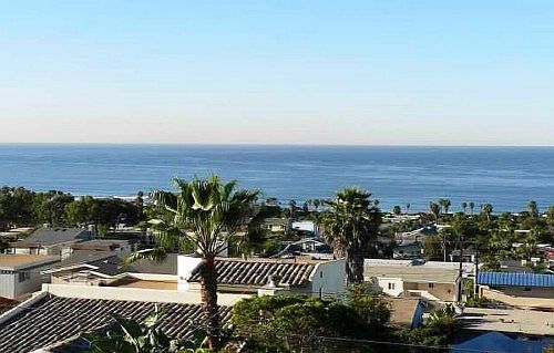 View website: http://2155cambridgeave.GreatLuxuryEstate.com - You must see this San Diego Home Garden magazine AWARD WINNER for 'Homes of the Year - 2005'.. Absolutely stunning home and views. Lower (street) level includes an additonal 850 sq. ft. (not incl. in living area sq. ftg.) currently set up as a workshop/extra garage with a 10x15 office, large storage room, and a toilet & sink. A metal garage door slides open to the driveway. All utilities are available inside with tremendous potential to convert to a home gym, bedroom(s), game room, home theater, etc. *Buyer to check with city to verify ability and requirements to convert this area to living space*. The entry level includes the master and second bedrooms and the 2 car garage (extra tall door) off of the alley with an automatic electric gate. The master bedroom suite enjoys an ocean view, it's own balcony, and a elegant bathroom that includes teak cabinets, slate counter top & accents, spa tub, and a limestone shower and flooring. Ocean view from the shower. Upstairs is the living area and kitchen. The sail shaped roof sections form an eyebrow that beautifully frames the view and provides privacy. An amazing open beam fir ceiling creates both intrigue and volume to the spacious living room with it's 100 year old reclaimed solid 3/4 inch maple distressed floors, frameless corner windows, and built-in book shelf and niches. Slider glass doors retract into the wall and open up the room to the wrap around balcony and endless ocean views. Step up slightly to the wonderful ocean view kitchen with stainless steel appliances, teak cabinetry with granite counter tops, accent lighting, and a casual breakfast bar. Outside, behind the kitchen is a large 11x22 hardwood deck perfect for basking in the morning sunshine. Just a few steps away is the detached 3rd bedroom/guest room which provides complete privacy from the homes.