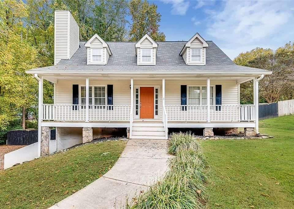 Charming home on large, beautiful lot with an expansive, welcoming front porch! Situated at the end of Chadwick on a cul de sac street, you'll love the peace and quiet and seasonal views of Sawnee Mountain! Flexible, flowing floorplan with kitchen overlooking living room is great for entertaining and family life. Owner's Suite is on the main level, with 2 bedrooms and a full bathroom upstairs. Along with the 2-car garage and tons of extra storage space in the basement, you'll also find a finished room that's perfect for a home office or game/hobby room. Off the kitchen is a large deck (perfect for grilling) overlooking the stunning back yard with mature hardwood trees, rolling topography, and a stock pool for the hot, summer days. Outdoor recreation options abound with Sawnee Mountain close by, and the 26-mile Big Creek Greenway at the subdivision entry, which is a paved trail that ends up in Roswell. Walk to Sawnee Elementary School! Home has been well-maintained and the roof is only 2 years old. It's ready for you to move right in!