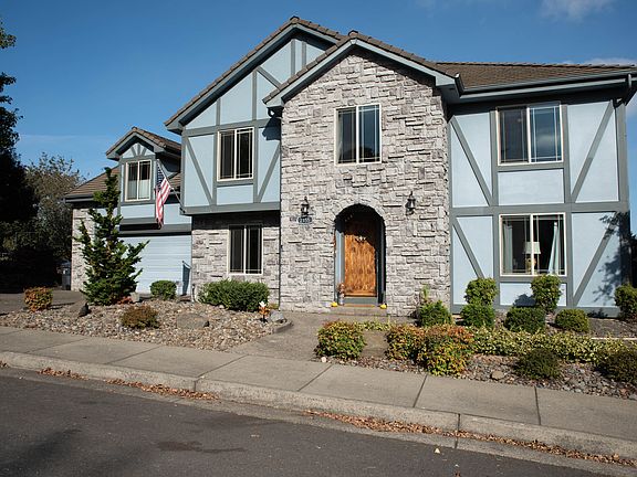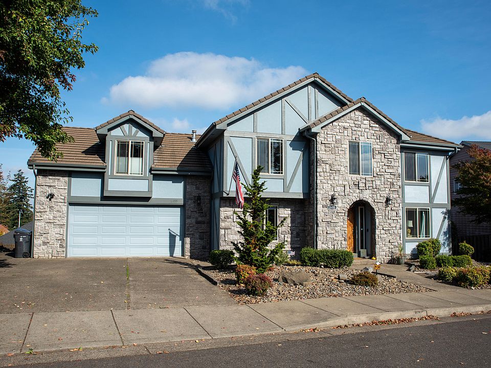 Unique floor plan features large kitchen, living room, den or office, formal dining, and dining nook on the main floor. Upstairs are 4 large bedrooms and a giant bonus room with four storage closets! Master suite includes gas fireplace, custom built-ins, walk in closet, 2 sitting areas, dual sinks, soaking tub, separate shower. Enjoy beautiful views of Mt Hood and St Helens from the Master Suite or the trex-style deck! The exterior design, hardwood floors, exposed beams, stone accents, and thoughtful landscaping make for a charming home!