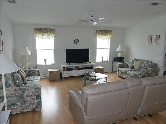 What a beautiful home on a spacious water-front lot. This 3 bedroom 2 bath is being sold turnkey with a golf cart and features a split floorplan and has only been a seasonal home for the seller. This well-maintained home features ceramic tile in the kitchen with a breakfast nook overlooking the pond, and the adjacent 250 sq. ft. air-conditioned Florida room has an expansive deck, just perfect for entertaining! Other features include an over-sized 1 car garage PLUS carport, laminate flooring in the main areas, and a garden tub in the master bathroom. Roof is 3 years. This home is located in the beautiful 55+ community of Cypress Lakes. With 3 activities coordinators, Cypress Lakes offers an abundance of resort-like activities and amenities, a 38,000 sq. ft. clubhouse, which features a full-service restaurant and tavern, golf pro shop, library, media center, billiards and grand ballroom that hosts various live entertainment. For those motivated by a healthy lifestyle, explore our state-of-the-art fitness center, aerobics studio and certified instructor, two heated swimming pools, two whirlpool spas, shuffleboard, bocce ball, lighted tennis and pickleball courts, horseshoes, billiards, and two challenging 18-hole golf courses complete with a driving range and full-time golf pro. Enjoy the abundance of wildlife by walking or biking among the community's 1,000+ acres. We offer a man-guarded 24/7 giving you peace of mind year-round. So, what are you waiting for ... Isn't it time you starting living the dream?