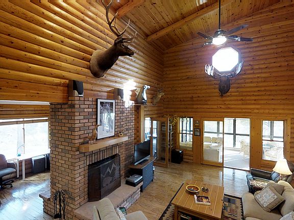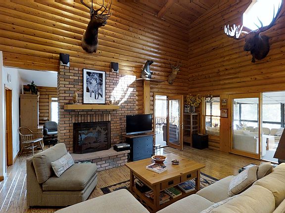 Beautiful real log home on .81 acre combined lot & a half in the very desirable gated Pineridge community. The homesite feels even larger because it backs up to a beautiful wooded ravine through which you have a view of Pine Lake. The home has extensive open & enclosed decks on 3 sides of the house. One enclosed area is 200+ square feet not included in the home listed square footage but is used as an Arizona Room style living space. The new owners will have the option to enjoy the currently enclosed outdoors areas or easily open them up for increased outdoor living space. In addition to the 3 bedrooms, there is a study that shares a 2 sided fireplace with the living room that boasts 2-story high ceilings. Look at the photos & virual tour then call to tour this mountain home.