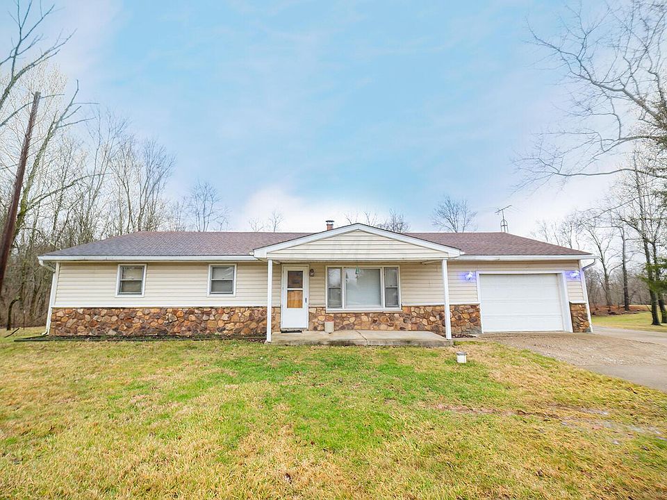 Opportunity Awaits! Solid ranch home on a peaceful half an acre in Fairfield Union School District. The home features 3 beds, 1 full bath, laundry room, and an eat-in kitchen. Interior could use some TLC, but exudes plenty of obvious potential. Spacious concrete driveway with ample parking options. And not just one two car garage, but two! Private yard & rear patio is surrounded by woods; making it perfect for relaxing or entertaining. Truly a rare gem in this country community!