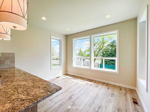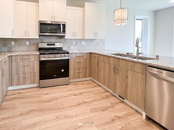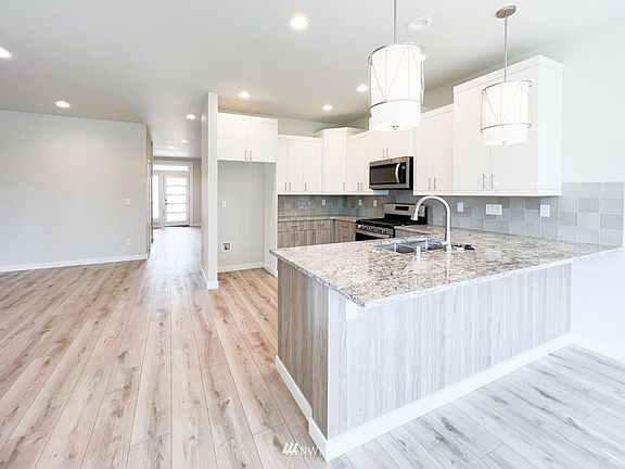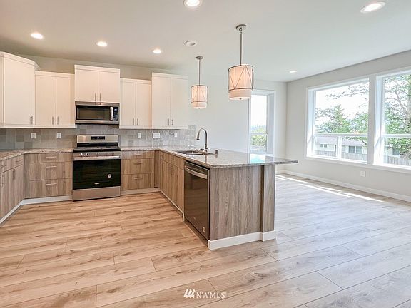 Brand new and main floor primary bed in a quiet, intimate 11 home street near downtown Ferndale. Beautifully appointed with upscale lighting, tile work, granite kitchen and related counters and more traditional NW architecture. Open kitchen/family room with sunny outlook onto your large backyard. With 3 spacious rooms up and an office down, this is a true usable 4+ bedroom home. You will enjoy this wide open great room floor plan that focuses attention to the stunning gourmet kitchen on one end, and the fully tiled fireplace. Large partially fenced backyard enjoys full southern sun and from the main bedroom, a view to the foothills and Chuckanut Mt. This home is complete and ready to occupy.