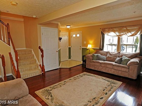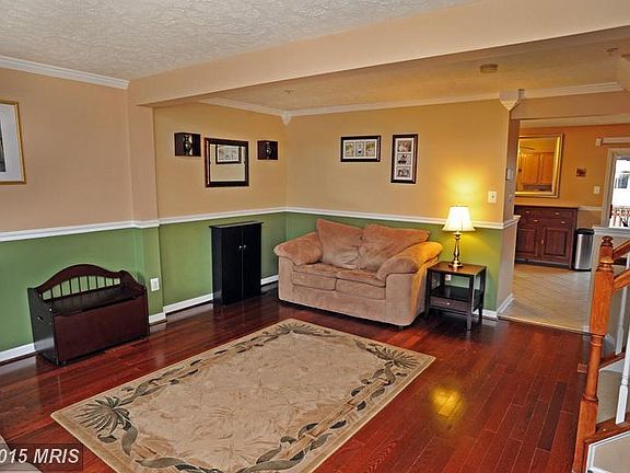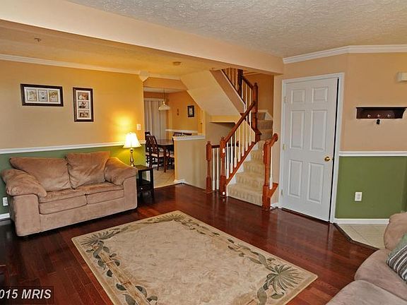 Lovely brick front town home with open floor plan. Living room has wood floor, chair rail, crown molding, Kitchen across the back of home with sliders to great deck. Master bedroom has vaulted ceiling and walk in closet. Features: new rec rm carpet, some updated light fixtures, some flooring updates, new kitchen appliances 2015, bsmt carpet 2014, AC 2014, furnace 2013, deck 2011.