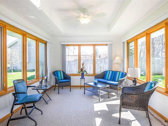 * SBR * Fantastic find. Cherry Valley location with full township services and low property taxes. Custom built plan with inviting covered entry, open foyer leads to the Great room with vaulted ceiling and gas fireplace. The Kitchen has plenty of cabinet storage, a floor to ceiling pantry with roll out shelves, granite tops, and eating area with sliders to a 12' x 12' maintenance free composite deck. The deck provides opportunity to enjoy the cozy private backyard, or step into the Southern exposed Sunroom for year round comfort. Master suite with dual closets, and en suite bath with dual vanity. In the lower level there is a large open rec room, a 4th bedroom with egress window, and full bath. Maintenance free exterior and 3-car garage. Gutter helmets and roof replaced in 2014. Spotless, like new and well cared for home!