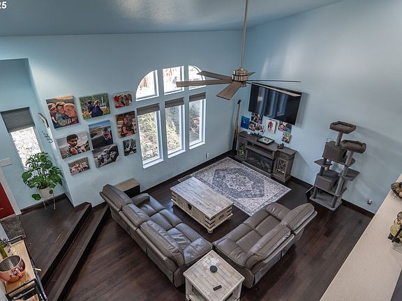 This charming home, nestled in the serene Green District of Roseburg, offers an ideal blend of comfort, style, and modern upgrades. The tastefully remodeled kitchen, completed in June 2022, features custom cabinets, top-of-the-line appliances, a massive sink, and beautiful porcelain floors. The addition of new cellular shades enhances the home's contemporary appeal. One of the standout features of this home is the fully paid for $54,000 Whole House Solar installation, completed in July 2022, to maximize energy efficiency. The roof was also replaced in 2021, ensuring the home's durability for years to come. Inside, you'll find three spacious bedrooms, two bathrooms, and a large 4th bedroom with a separate entrance that would make a great family room or in-law quarters. A loft nook provides additional space for work or relaxation. The home is equipped with vaulted ceilings, skylights in the living room and master bath, and a garden tub for ultimate relaxation. The master bedroom boasts a walk-in closet and a generously sized extra storage area. Step outside to a private, fenced backyard with plenty of space for gardening or entertaining. A French door off the dining room leads to a deck perfect for enjoying the outdoors. For added convenience, there's a storage shed in the backyard and RV parking on the side of the home. With 2,100 square feet of living space, this home combines style, function, and breathtaking views, offering a perfect retreat in a nice location. The heat pump/AC system was new in 2012.
