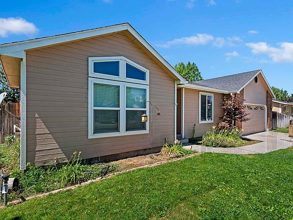 PRICE IMPROVEMENT & $10,000 BUYER CREDIT OR RATE BUY-DOWN!!! This charming single level residence is nestled on a low-traffic street in the heart of Meridian less than 1 mile to popular Tully Park and Meridian Library. Minutes from the Village, schools, shopping and dining. This beautiful home provides a clean canvas to personalize and make it your own. The great room is large with vaulted ceilings and lots of natural light for everyday living. Hardwood floors span the kitchen & eat-in dining room. Both bathrooms have been recently updated with granite counters, new flooring, & glass tile back splash. Bedrooms are spacious. The french doors open to the over-sized backyard that features a permaculture food forest including perennial fruiting plants & trees; apple, cherry, peach, raspberries, blueberries, elderberries, raised garden beds and more! Perfect way to save money on groceries and eat healthy! This is a no spray, all natural yard. No HOAs.