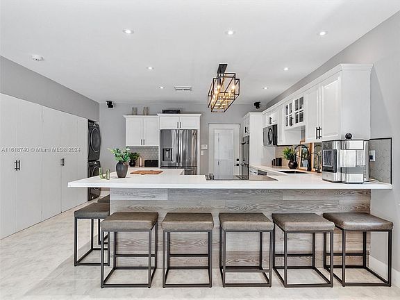 Discover the epitome of luxury & convenience in this fully remodeled masterpiece! Nestled on a sprawling half-acre lot in San Souci, this stunning 3-bed, 2-bath home effortlessly blends modern elegance with practical living. Rarely found so close to the beach, this property features a modern 2-car garage alongside a driveway accommodating up to 12 cars – ideal for hosting guests or storing your collection. Unwind in your private oasis, complete w/a detached room awaiting your personal touch – perfect for a gym, office, or guest suite. Located mere moments from Bal Harbor shops, the St. Regis Hotel, and pristine beaches, indulge in unparalleled convenience. Top-tier private schools & Whole Foods are within easy reach. Seize this opportunity to elevate your lifestyle.