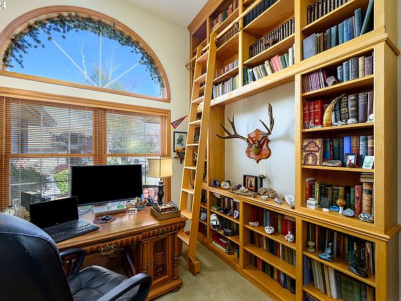 *Elegant and Spacious Home in quiet established neighborhood, buffered from the busy streets* Discover unparalleled charm in this stunning residence. This home radiates pride of ownership and offers versatile living spaces with 3 bedrooms plus 2 additional bedroom options. The 4th bedroom, currently a den, boasts a dramatic floor-to-ceiling library complete with a rolling ladder. The 5th room, situated up a wooden spiral staircase, leads to a finished attic perfect for a bonus or playroom. Entertain with ease in the formal living room that flows seamlessly into the spacious dining area, ideal for large gatherings. The kitchen is exquisite with Cambria quartz countertops, a new Bosch dishwasher, Jenn-Aire range, opens to a cozy breakfast nook and expansive family room. The family room is adorned with beautiful floor-to-ceiling wood wainscoting and features two sliders that lead out to a gabled, covered wood deck, finished with tongue-and-groove cedar, perfect for year-round enjoyment in the PNW. The primary suite is a true retreat with a walk-in closet and a fully remodeled en-suite bathroom featuring a huge walk-in tiled shower with three shower heads, glass wall, heated tile floors, dual vanities, and an exclusive coffee bar! Bedrooms 2 and 3 share a Jack and Jill bathroom with dual vanities and quartz counters. Outside, the private manicured yard with mature trees providing ample privacy, 7 producing blueberry plants, a magnolia and lilac tree, Devon violets, raised garden beds, and a garden shed. The north side yard offers potential for a dog run accessible through the yard or the garage. Additional features include a three-car garage with epoxy-coated floors, a completely updated crawlspace with new insulation, and vapor barrier. Wide hallways and single-level living can accommodate many ADA needs. This home also includes a security system with a front door camera. And the best part? No HOA fee! Sellers are motivated to sell. Home Warranty being offered.