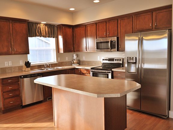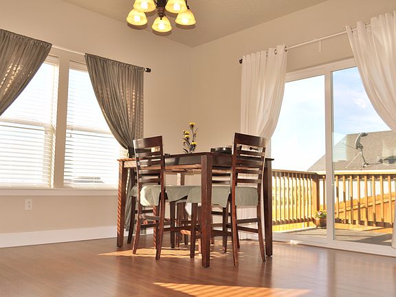 Darling home in upscale neighborhood. This 3 bed 2 1/2 bath home is located on a larger corner lot. There is RV parking available with some modifications to the yard. Newly treated deck and amazing view of the Hermiston Butte. Large 2 car garage. TUGS with fenced and landscaped yard.