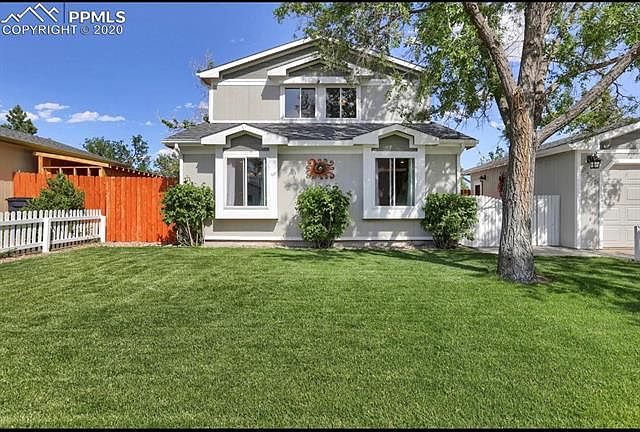 Stunning move in ready home near Constitution and Peterson Rd. Close to schools, shopping, Peterson and Shriever. This Home has been completely redone over the past 5years. The main level offers a large kitchen with stainless steel appliances, island and granite counter tops as well as dining area and spacious living room. From the cozy family room with fireplace and built in cabinetry you walk out to the beautiful back patio and huge fenced back yard. All bedrooms are on the upper level with an additional full bathroom. Front and back yard are fully landscaped and fenced. The detached 2 car garage has a separate meter and designated 220V outlet. Both bathrooms have been remodeled and feature beautiful subway tile. This is a must see!!!