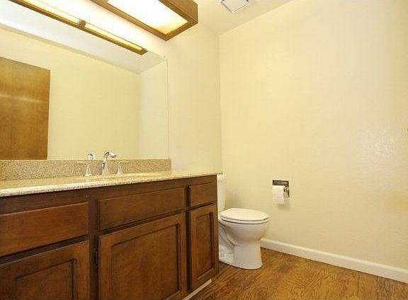 Well maintained townhome with spacious living room and kitchen, overlooking large private backyard and patio. Unit features a full 2 car garage. Bedrooms have a jack and jill bathroom and separate private vanities. Bedrooms are spacious and feature large sliding door closets and ceiling fans. Additional features include forced air heating and AC. Fresh interior paint and refinished hardwood floors.