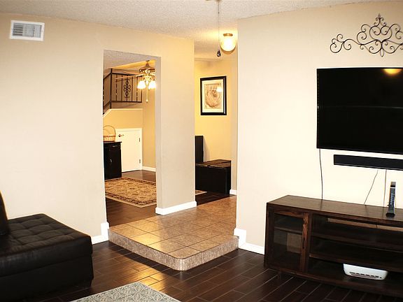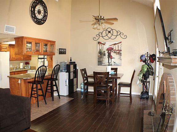 Newly installed wood ceramic flooring. Double french doors in family room w/ fireplace. Custom kitchen cabinets, huge walk - in pantry off kitchen, freshly painted - a definite must see!! HOA fee includes water, trash, roof & exterior stucco.