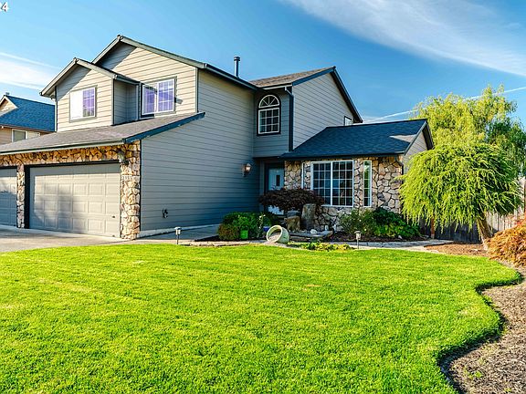 Well-maintained, updated traditional home in most desired neighborhood in Troutdale. High vaulted ceilings at entry way giving great natural light into the living and dining rooms. Home has been updated with pristine wood flooring and granite countertops throughout. Kitchen offers updated tile flooring, newer SS gas appliances, hood vent and eating bar. Upper level has 2 bedrooms sharing an updated bathroom, and a large primary suite with views, walk-in closet and updated tile bathroom w/ an expansive walk-in shower. Spacious family room on the main floor opens up to a private covered deck and patio. Backyard features lush grass, garden beds, toolshed, and a custom fire pit great for entertaining. Front yard offers soothing water feature. 3-car garage with plenty of room. Recent updates include newer roof (2020), exterior paint (2023), water heater (2023), landscaping, garden beds, and fire pit (2022). Ideal location near schools, parks, restaurants, shopping and entertainment. Close highway access I84. Central air and irrigation system installed. Don’t miss the walking trail to Edgefield!
