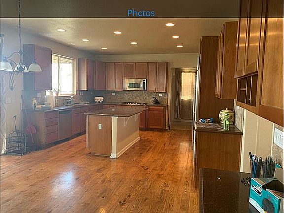 Unobstructed mountain views from large covered deck 3.5 car garage (2 garages, 1 - 2.5 car and 1 - 1 car) gourmet kitchen - stainless appliances, tall cherry cabinets, marble backsplash, island kitchen, double convection oven, gas stove and walk-in pantry entertainer's dream with kitchen attached to family room all with sweeping mountain views. Beautiful fully finished walk-out basement with full bath. Plenty of storage in the basement. Walk-out to large stone patio. Main floor laundry (tenant provides washer/dryer). Walk to pool (Grange), extensive paved and rough trail system close to movie theater, grocery stores, hospital and just 2.2 miles from I-25, convenient commuter location with highly coveted views great community (Fuller Bluff - meadows) move in date is flexible dogs are welcome with pet deposit (he/she will love the fenced yard) 1 or 2 year
