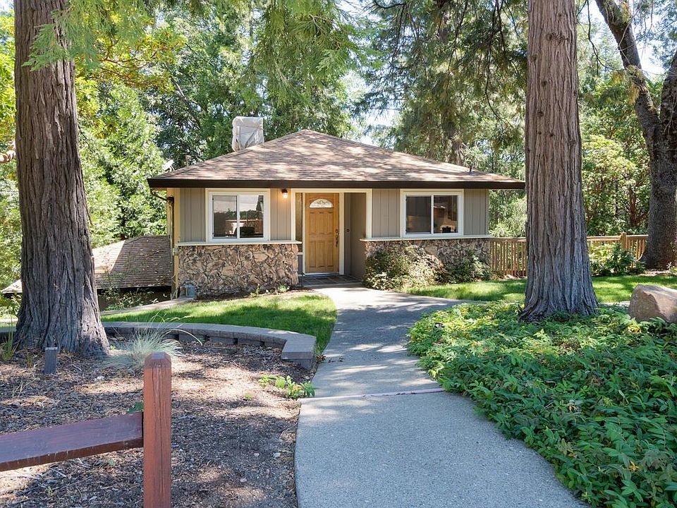 This charming home, located in the Apple Hill area of Placerville, offers a private and tranquil setting on a 1.55-acre wooded lot. The home features an open floor plan with breakfast bar for casual dining, two beautiful decks overlooking the expansive back acreage, a detached 2-car garage, a workshop, two storage sheds and RV parking with sewage and electrical hookups. The home currently has two bedrooms, with the second bedroom having previously been two smaller bedrooms. It would be easy to convert this bedroom back into two smaller bedrooms, creating a 3-bedroom layout. This property offers all the amenities of quiet rural living, allowing residents to enjoy the peace and tranquility of nature. Despite its serene setting, it remains conveniently located, with just a 5-minute drive to Highway 50 and an 8-minute drive to the historical downtown Main Street of Placerville.