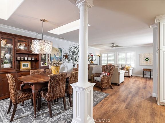 Run! don't walk to this highly desirable remodeled 2 bed 2 bath one story home with no one above or below and no stairs in the resort style senior community of Laguna Woods. The amazing outdoor landscaping around this home consists of a huge flowering pear tree that shades the front yard providing the perfect shaded spot to sit and take in the views of flowering plum trees, pygmy palms, rose and hibiscus bushes, butterfly trees and many more. After taking in the views of the yard enter through a private gate to a peaceful and secluded front courtyard. Walk through the custom front door and be ready for some luxurious living in this open concept bright and airy floorplan. This home has been completely remodeled and many features have been added including central heating and A/C, inside private laundry, skylights and a huge fully insulated sunroom adding over 200 square feet to this desirable Valencia floorplan. The kitchen is a chef's dream with new matching stainless steel GE appliances, Kohler farmhouse sink, custom white cabinets and slate backsplash. Both bathrooms have been very tastefully remodeled and the entire home has uniform wood plank style LVP flooring(no carpet anywhere), crown moldings, LED lighting and dual pain windows throughout. This home is incredible to say the least. Laguna Woods has loads of amenities including 7 clubhouses, 5 swimming pools, multiple championship golf courses, tennis and pickleball courts, fitness centers, libraries, restaurants, horse stables and over 200 clubs to join. A truly special place to call home. The HOA fees include property taxes, insurance, trash, water, sewer and some building maintenance. Better hurry on this one!