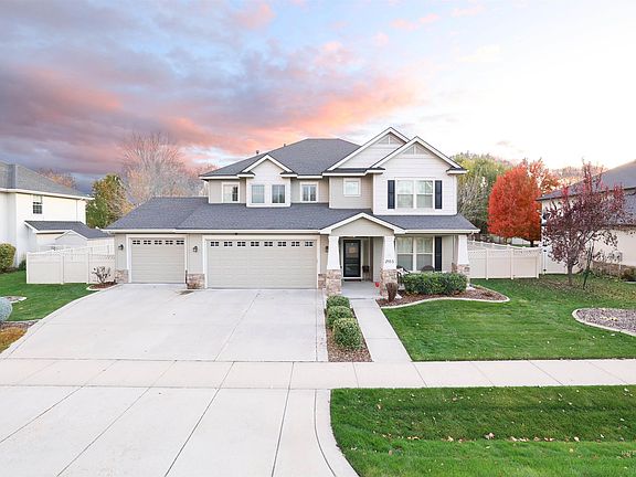 $20,000 Price Improvement on this popular floor plan in the Bridgetower Subdivision! 5 Bedroom, 3 1/2 Bath, 3867 SF, plus Bonus Room and Office (or 6th Bedroom). Main Level Guest Suite. Open Living Area with large Kitchen & Dining area off of Great Room. Flex Room / Private sitting area / Nursery hidden behind master closet and extra storage room off of upstairs laundry room. See 3D TOUR below! Enjoy 2 Community Pools, Multiple Parks, miles of Walking Paths (along a stream!), Community Club House and Hunter Elementary right in Bridgetower! Sawtooth Middle and Brand New Owyhee High School with full retail within minutes (Costco, Winco, Wal-mart, Fred Meyer, and others) Great Location! Huge Yard. Come make this one yours!